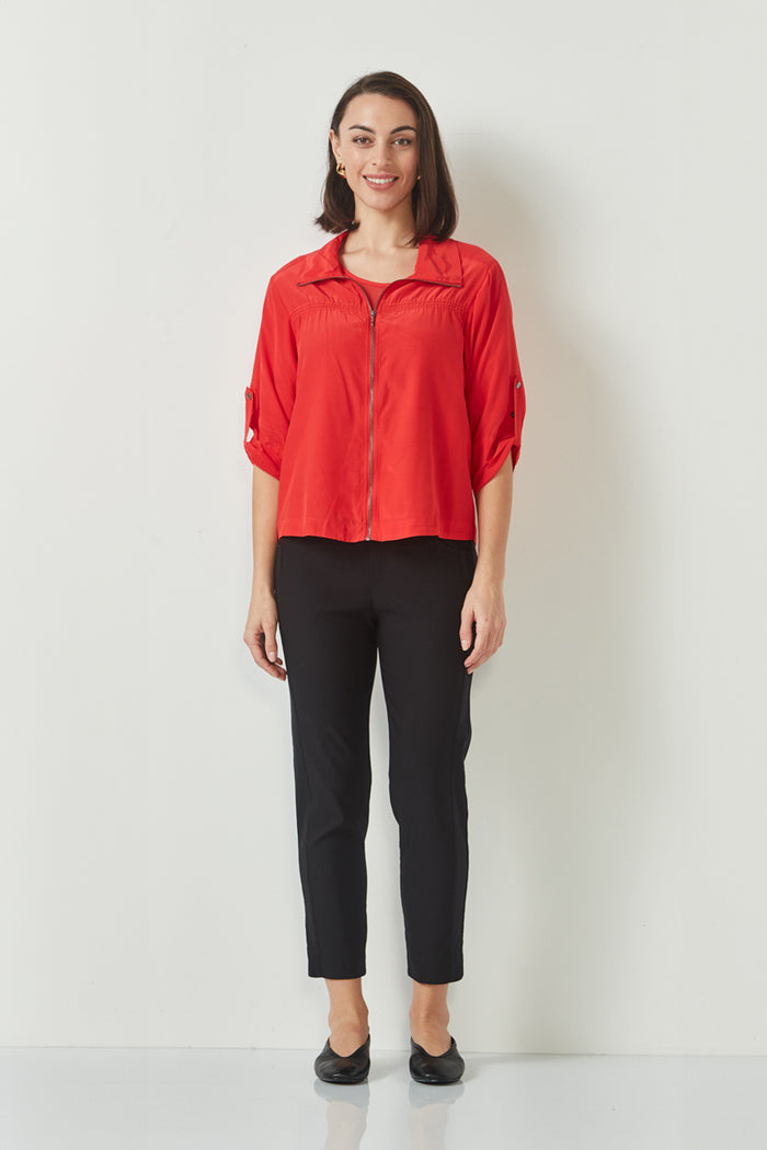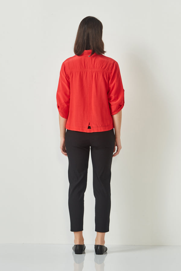 JOSEPH RIBKOFF | Woven Boxy Top With Shirt Colllar Radiant Red