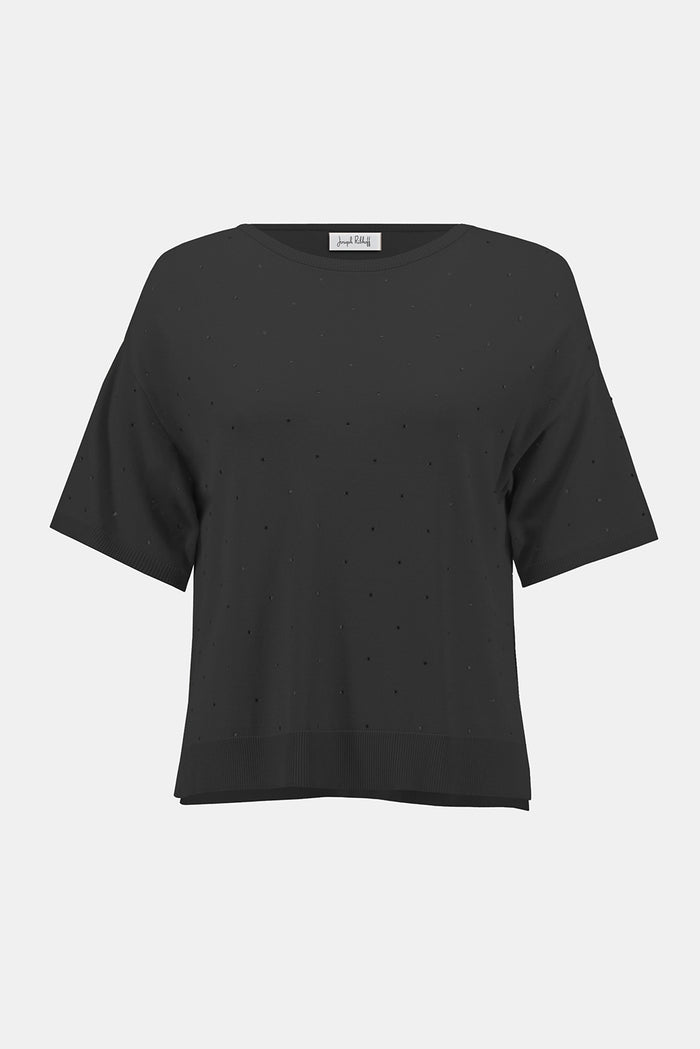 Joseph Ribkoff | Sweater Knit Elbow Sleeve Pullover - Black 252906