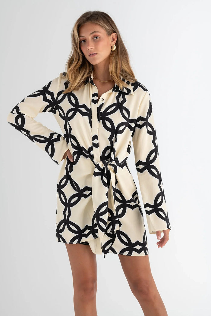 CAMILLA | COLLAGE KINGDOM PUFF SLEEVE SHIRT DRESS
