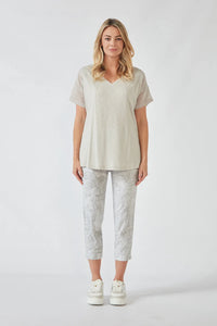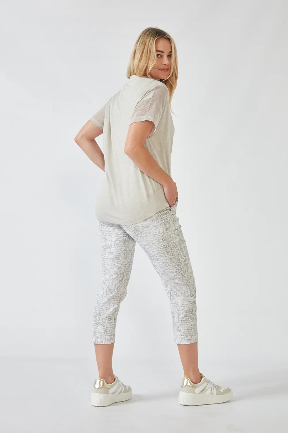 The Essex pant features deep front pockets and cuff detail. 7/8th length pants with relaxed legs and elasticated waist. Made in our exclusive European, lightweight stretch cotton Acrobat fabric for comfort, breathability, and easy care.