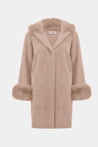 Joseph Ribkoff | Feather Yarn and Faux Fur Sweater Coat - Rosé 243923F25