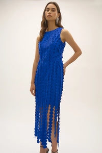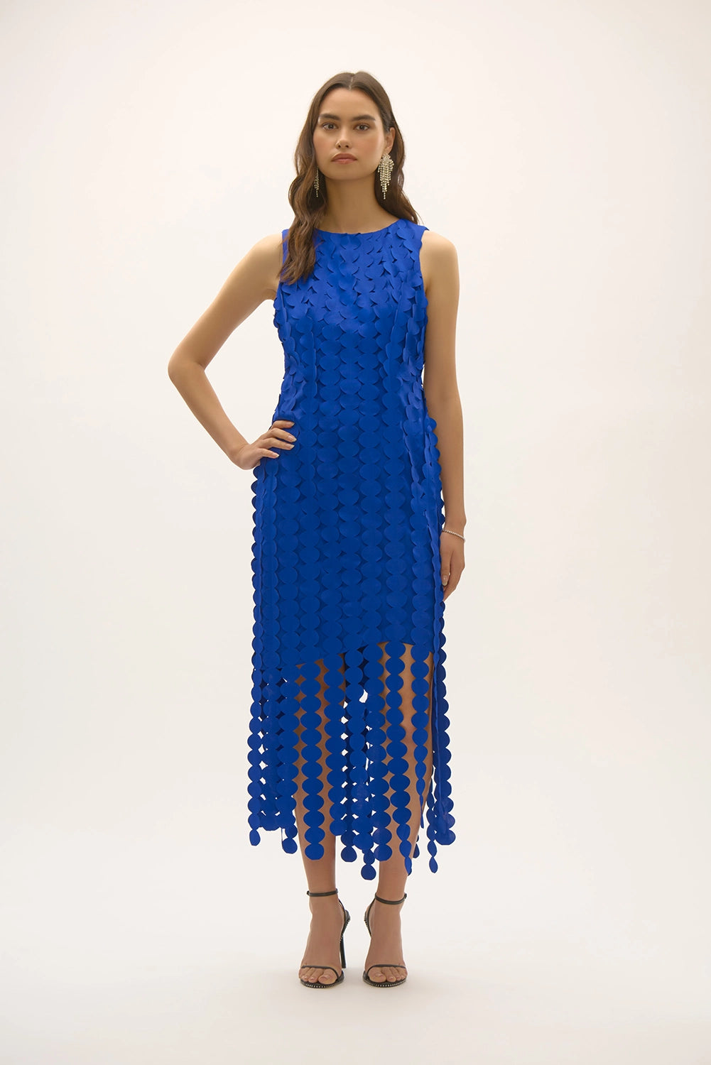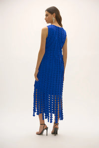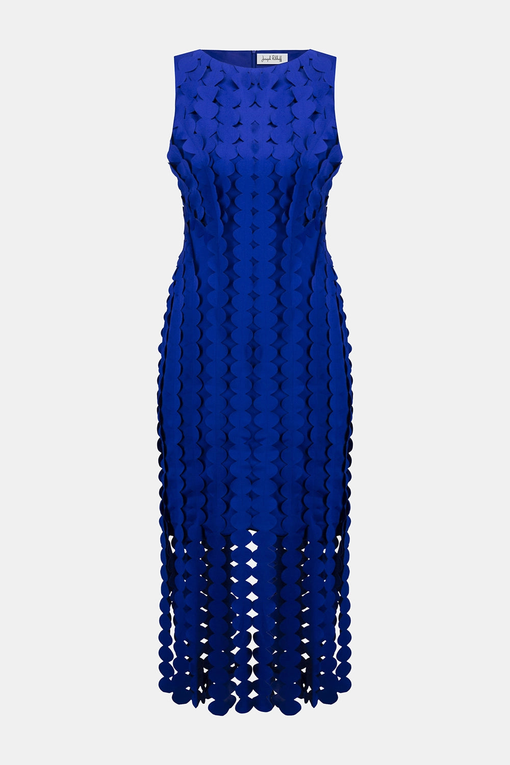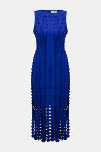 Captivate the room in this striking scuba knit dress. Adorned with eye-catching laser-cut circle fringes, this piece commands attention. The elegant boat neckline and sophisticated midi length create a sleek silhouette, perfect for any formal occasion. This remarkable sheath dress combines modern flair with timeless elegance, ensuring you leave a lasting impression. Part of the Signature collection.