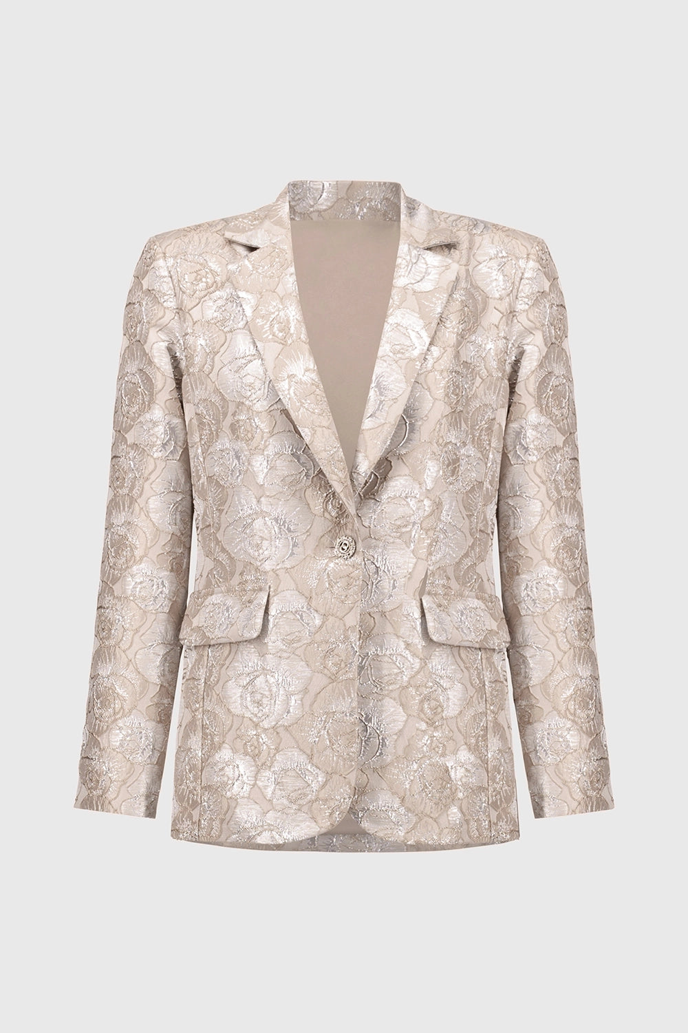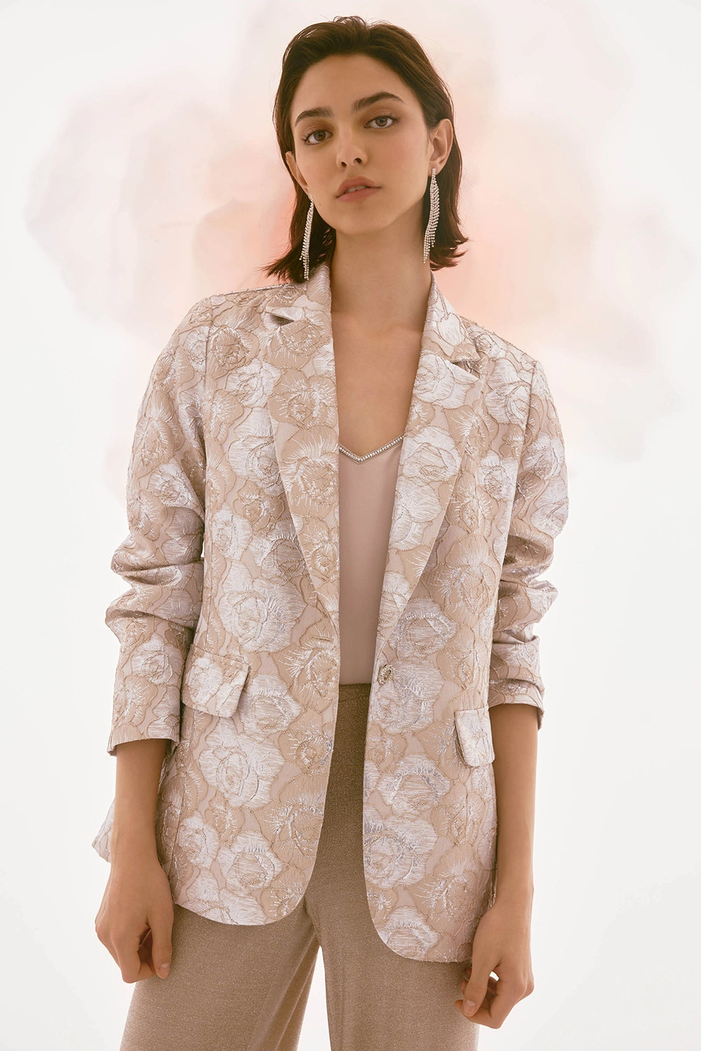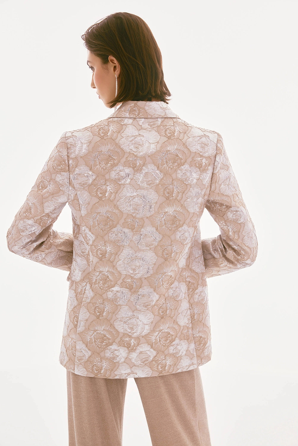 Crafted from a luxurious floral brocade fabric, this show-stopping blazer is everything you want it to be. Tailored with a classic notched collar, long straight sleeves, and faux pocket flaps, this single breasted wonder checks all the boxes. Cut in a boxy fit and lined, front and back, for your comfort. Part of the Signature collection.