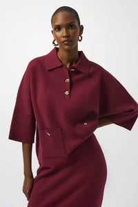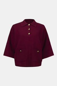 This sweater-knit pullover blends a relaxed silhouette with refined details for a casual-chic look that's anything but ordinary. Golden buttons trim the placket and embellish the front pockets, adding a touch of sophistication, while three-quarter bell sleeves complete the design with effortless, free-spirited flair.