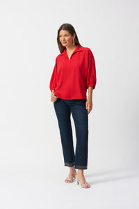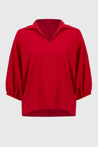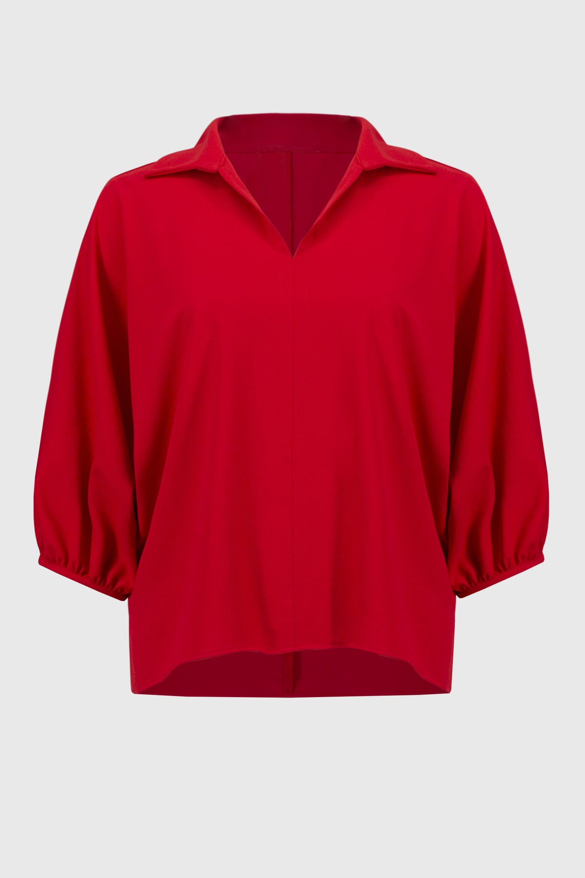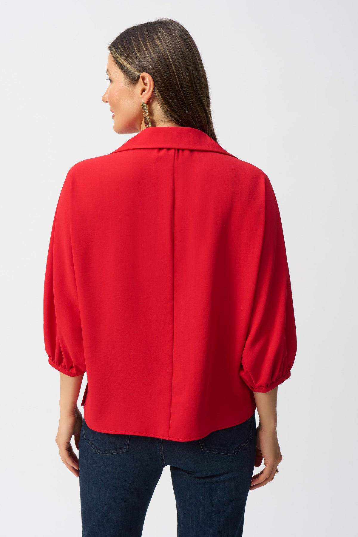 This beautiful woven top is a perfect canvas to style a sophisticated ensemble. The shirt collar and three-quarter dolman sleeves lend a refined feel to the garment. The boxy silhouette adds character and poise to the design, elevating its irresistible charm.