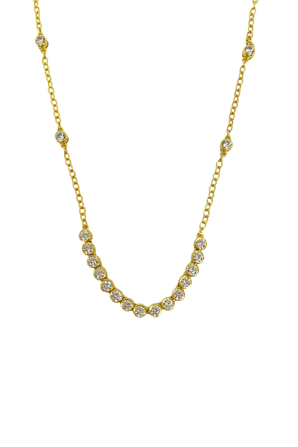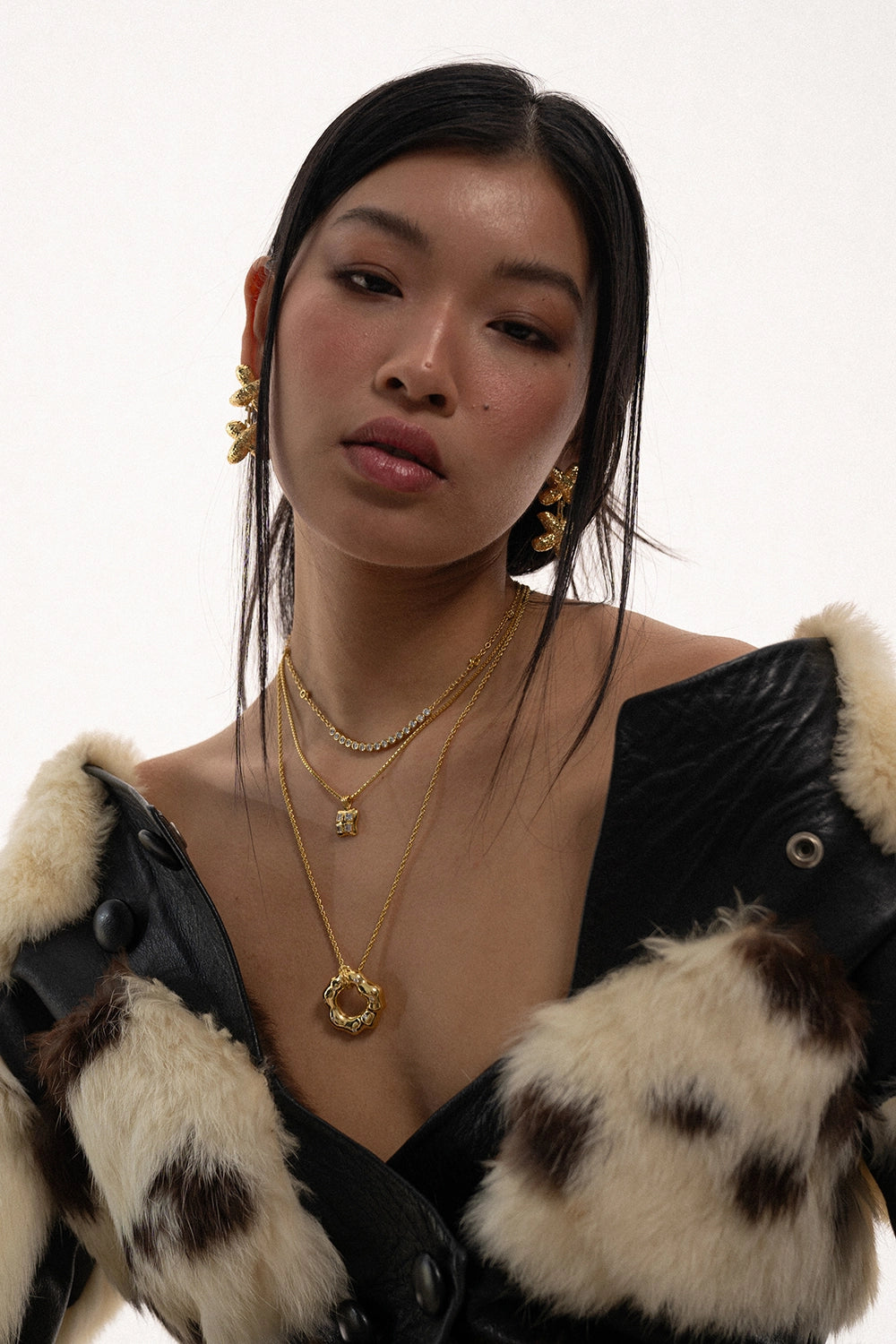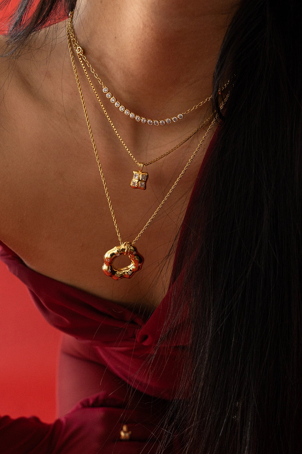 Introducing the IVY Necklace in Gold... Mountain & Moon take on the classic tennis necklace combines glamour and antique charm with a modern twist. The design features exquisite, vintage-inspired white CZ set in intricate, antique-style bezels that showcase their brilliance with a timeless elegance. The chain features our signature textured ball work, offering a modern, bold edge while maintaining that classic allure. Worn as a statement piece on her own or layered for a more personalised and dynamic look. You'll never want to take her off!