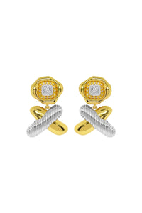 The Quinn Earrings from MOUNTAIN & MOON Legacy Collection are here to steal the show! These beauties exude timeless sophistication with just the right touch of contemporary flair. Imagine the perfect fusion of vintage charm and modern edge, all wrapped up in one dazzling piece. Featuring a bold mixed metal design, with striking contrasting textures – it's the kind of earring that demands attention without even trying. And let's not forget those sparkling faceted white CZ gemstones that catch the light in the most mesmerising way. The Quinn Earrings, will have you feeling like a style icon – effortlessly chic with a playful twist. Whether its a night out or adding a touch of elegance to your everyday look, these earrings are your new go-to accessory. So go ahead, be bold, be fabulous, and let your ears do the talking. The Quinn earrings aren’t just a statement; they’re the statement.