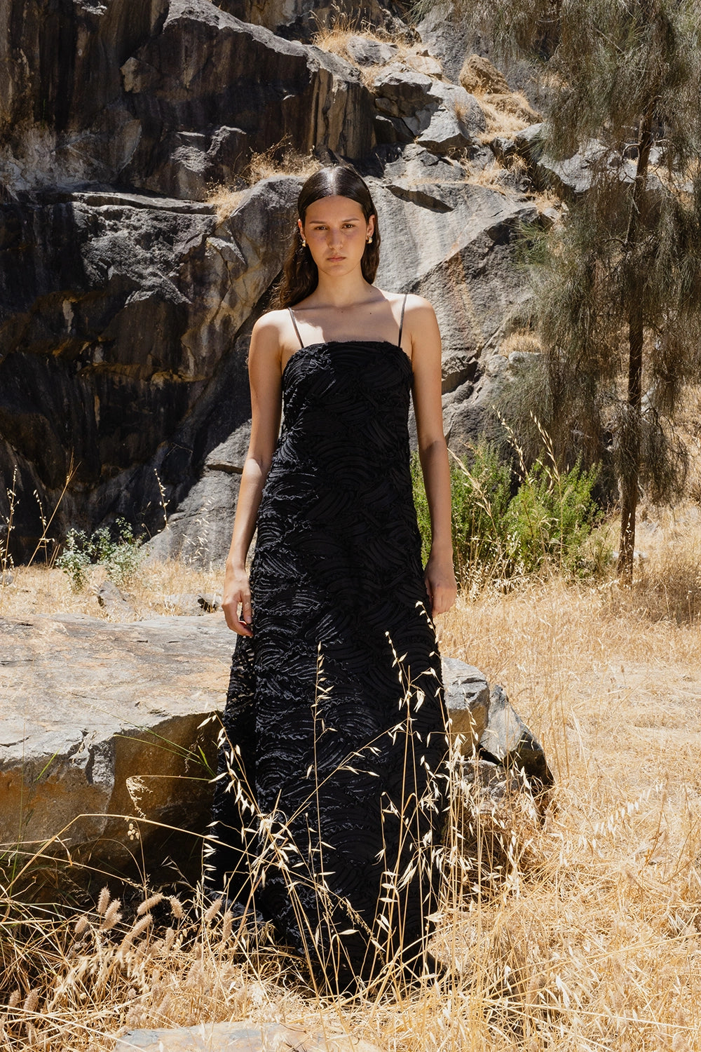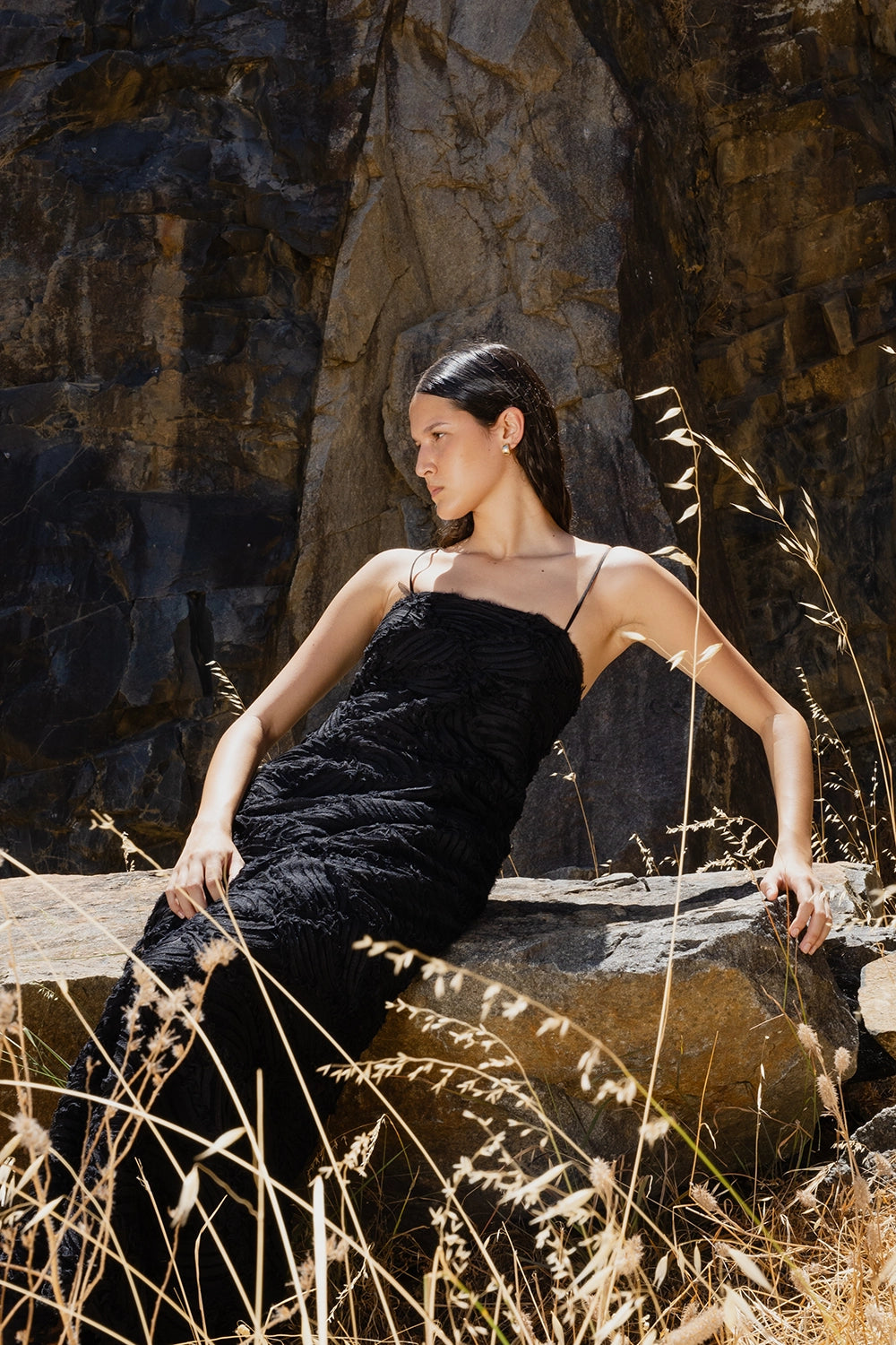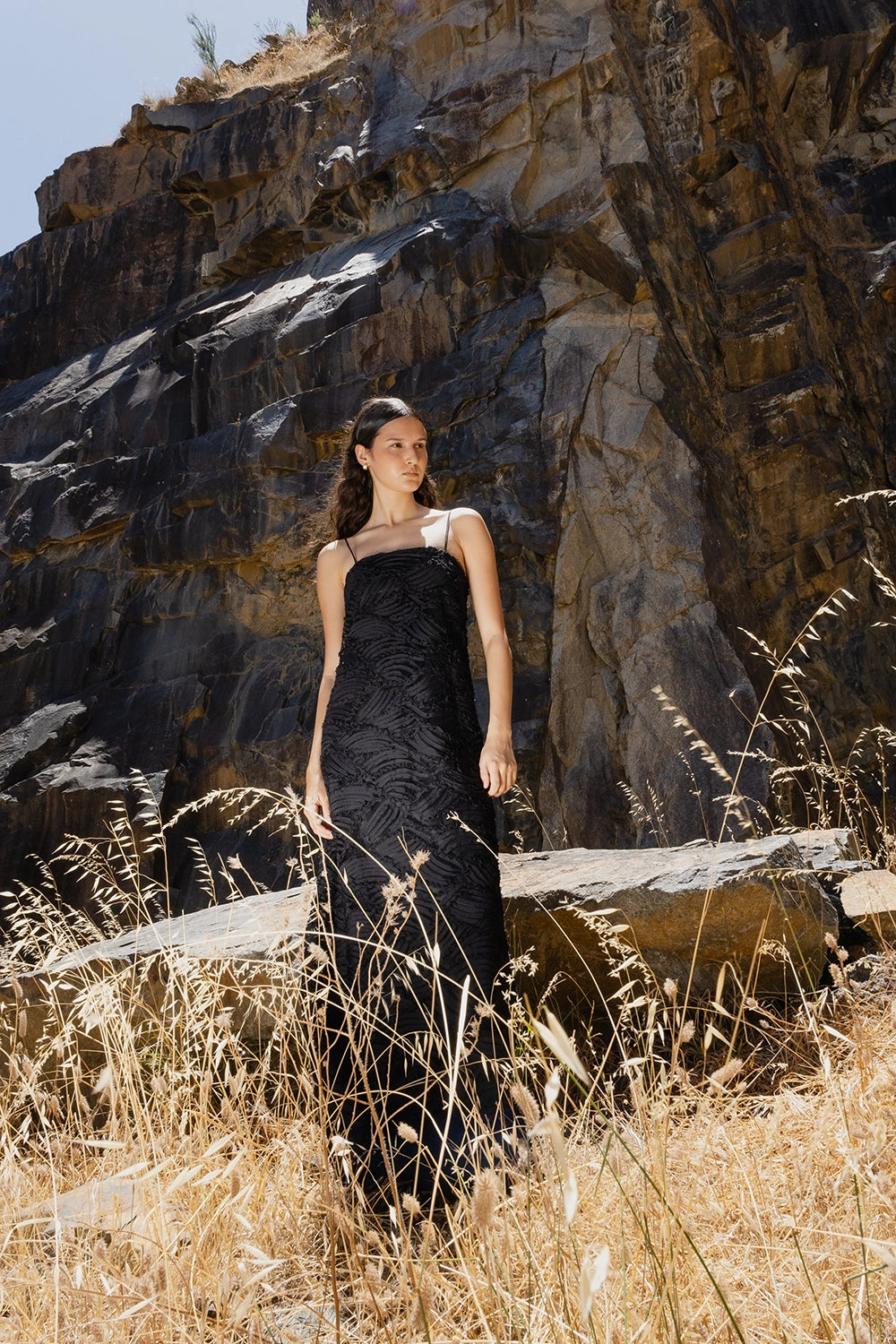 Introducing the Duplicity Slip in Kara Nazar by One Fell Swoop—a masterpiece of contemporary elegance. Crafted from the luxurious Kara Nazar fabric, each piece is uniquely designed with intricate manipulation, ensuring no two dresses are alike. This maxi slip features a sleek silhouette that gracefully drapes over the body, culminating in a floor-length hem. The flattering square neckline and delicate thin straps enhance its sophisticated allure, making it an ideal choice for formal events, evening soirées, or any occasion where making a statement is desired. Proudly Australian-made, One Fell Swoop is renowned for minimalist silhouettes that complement the female form.