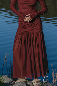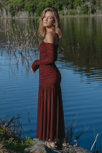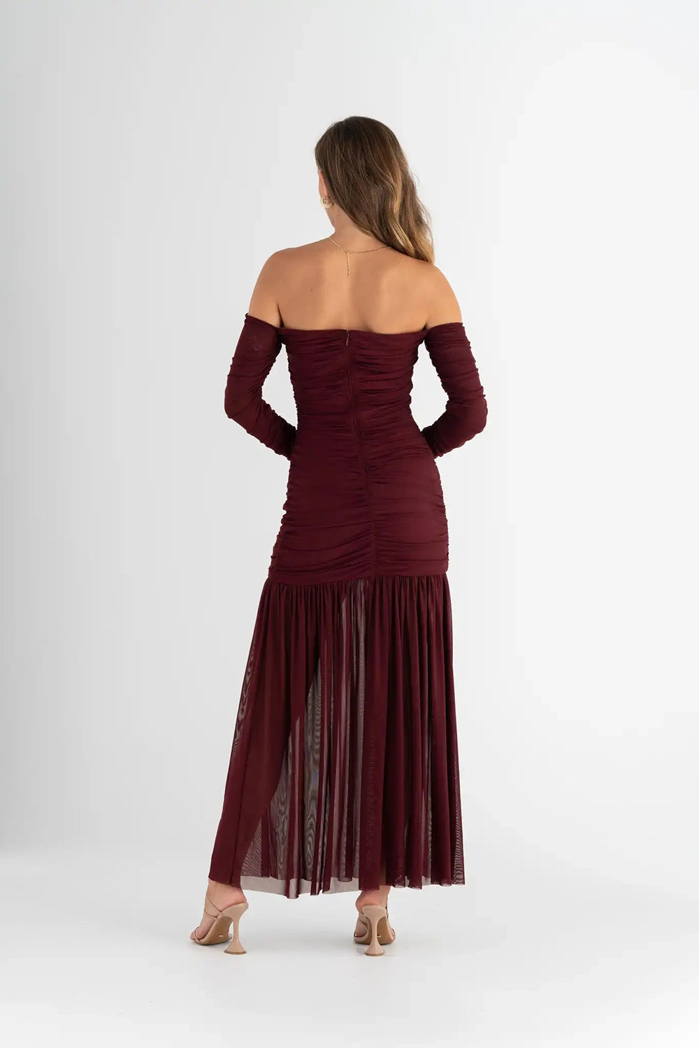 Length: 140cm (size AU 8). Our model is 178cm tall and has a 79cm bust, 62cm waist and 86cm hips.