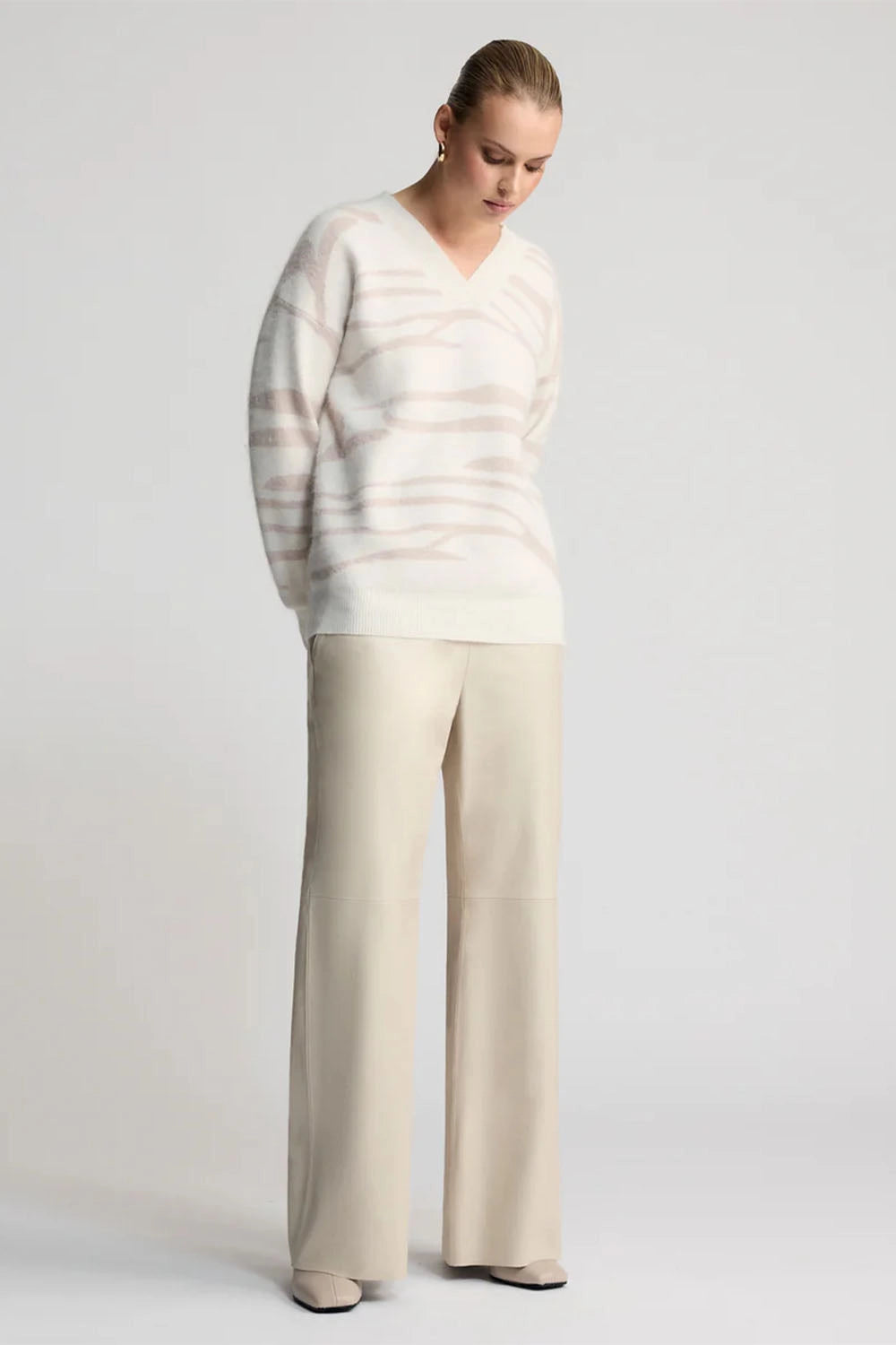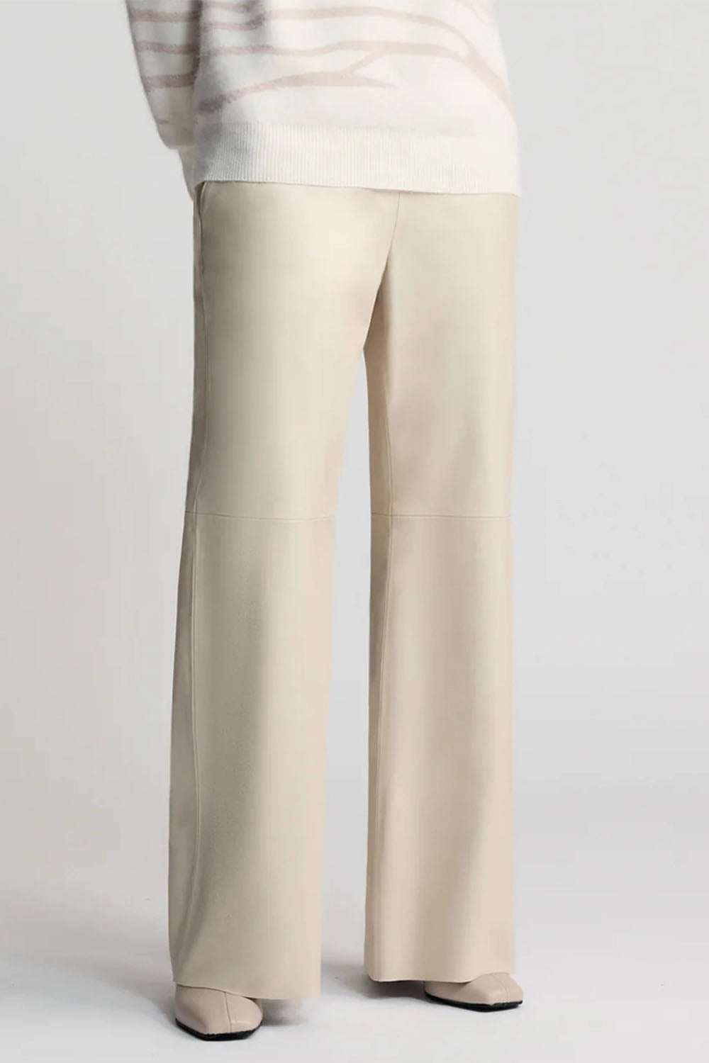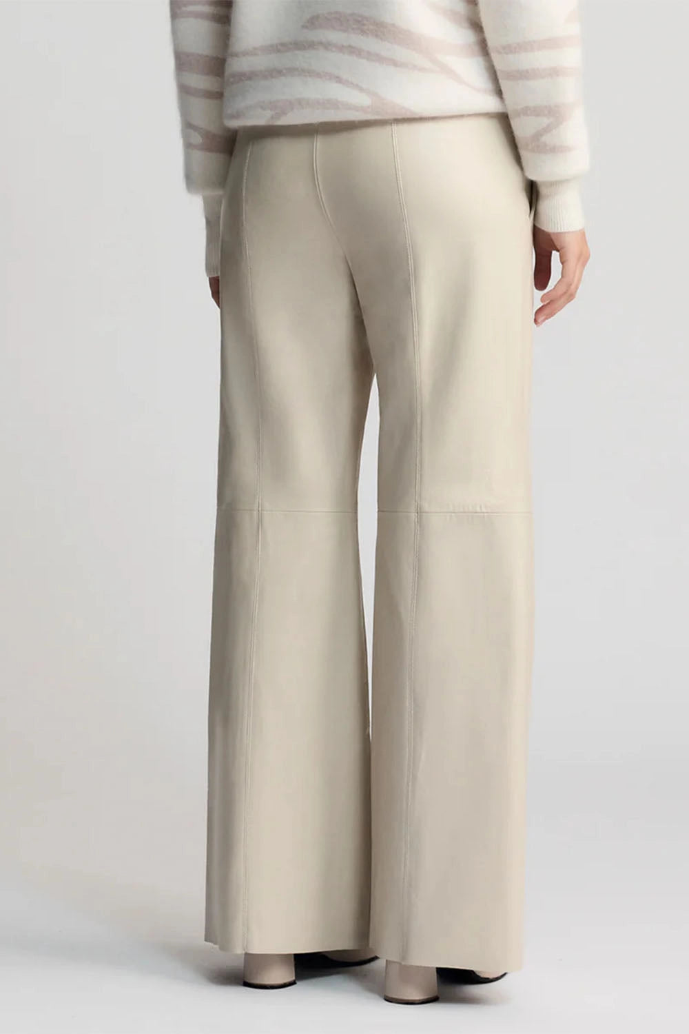 Chicago has a fully elasticised waistband with stitching detail, carefully constructed front angled pockets, and a multi-panel leather back. The front consists of full yokes of leather with a knee seam-join and is tailored for perfect fit and shape to achieve the wide leg look. The Chicago has a high-rise cut, but being fully elasticated the waistband can be synched lower according to preference. The bottom hem has a raw-edge finish making it easy to be shortened if required and has an unlined body to assist with the perfect drape.