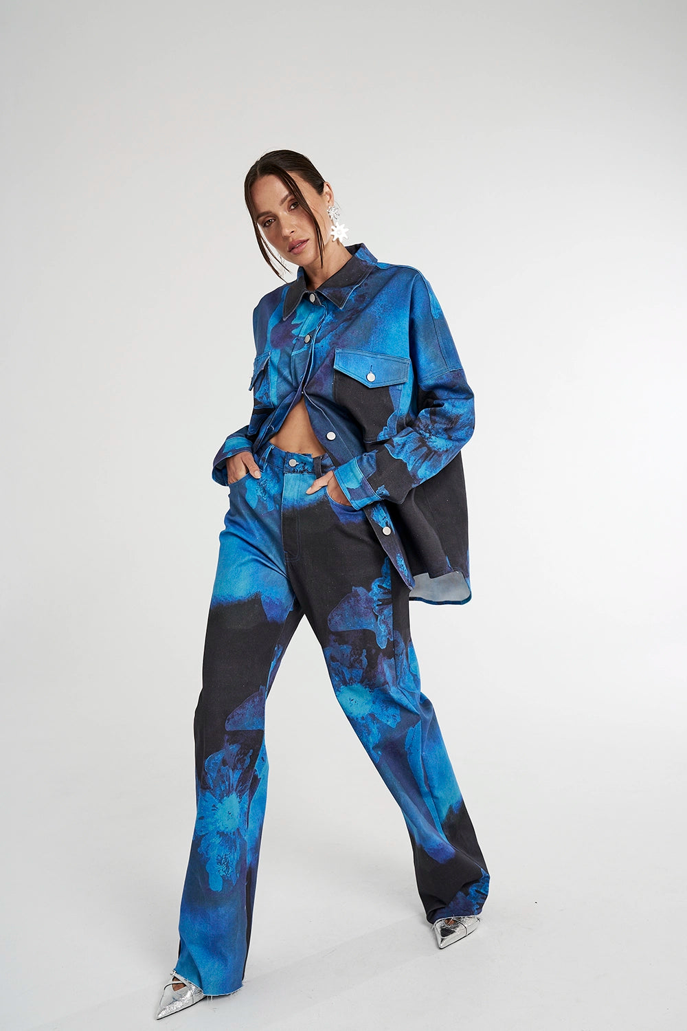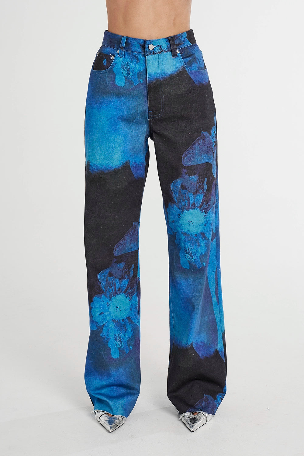 The Classic Summi Summi Jeans enhanced with the moody Dark Lumen print. Boasting a flattering straight leg fit that hugs your hips and waist, and a raw hem detail, these jeans are not only stylish, but comfortable and versatile.